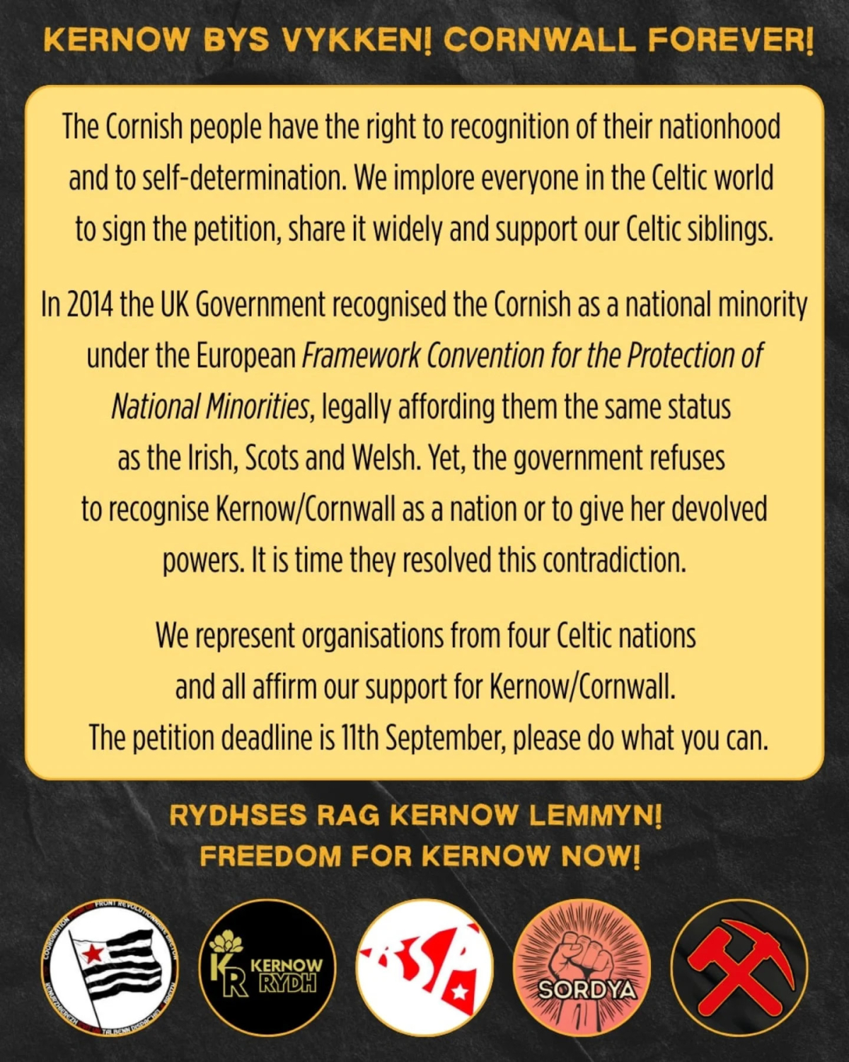 The Republican Socialist Platform is proud to co-sign the following statement in solidarity with Cornish left organisations campaigning for devolution in Kernow/Cornwall on par with that extended to Scotland and Cymru/Wales. We encourage people in Scotland to sign their petition. The Cornish people have the right to recognition of their nationhood and to self-determination. We…